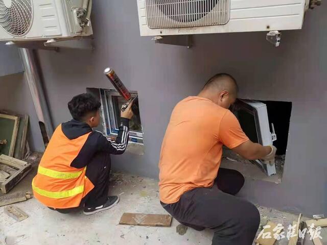 在国庆假日期间,位于石栾路与建设南大街交叉口处的二印宿舍(紫薇园)老旧小区改造施工依旧在紧张进行中,记者看到,工人师傅正在进行楼顶防水、地下室塑钢窗更换、健身器材安装等施工。“地下室以前的窗户是木质的,年久失修,都漏风了。现在换了塑钢窗,结实多了,保温效果更好。”工人师傅一边安装窗户一边说。