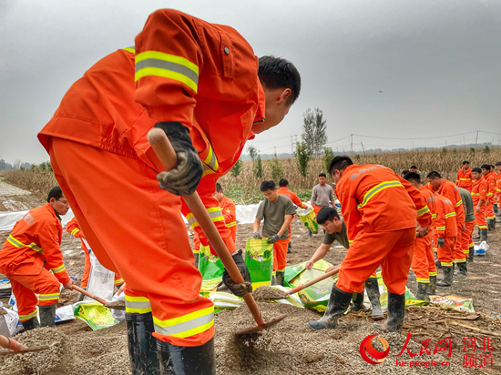 10月8日,邯郸市森林草原消防支队正在加固圈堤。 周绍宗摄