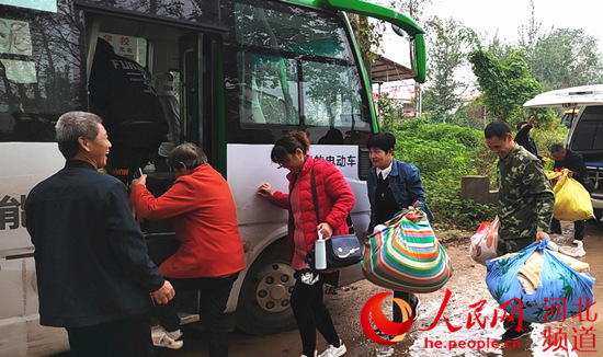 10月9日下午,大名县万堤镇二集村村干部安排专车转移群众前往集中安置点。 人民网 朱鹏涛摄
