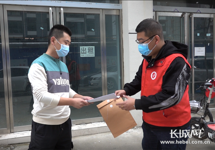 邢台市襄都区牛市新街社区“跑腿儿哥”丁文凯上门收集资料。 长城网记者 魏亚慧 摄