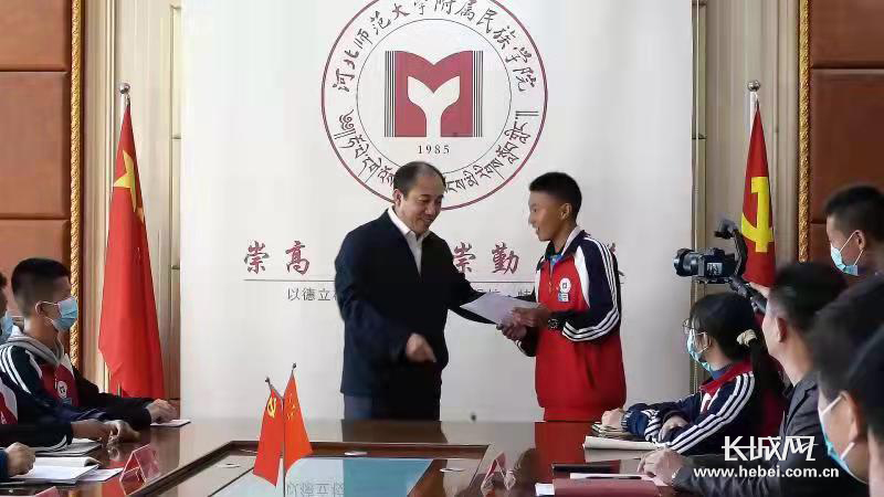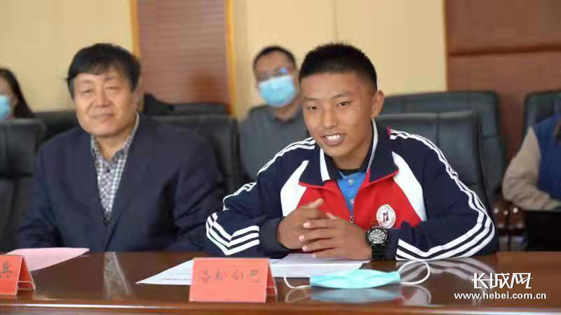 近日,河北省委书记、省人大常委会主任王东峰给河北师范大学附属民族学院内地西藏班同学洛松向巴回信。省委教育工委书记、教育厅党组书记、厅长董兆伟将回信交到洛松向巴手中。长城网记者 冯硕 摄