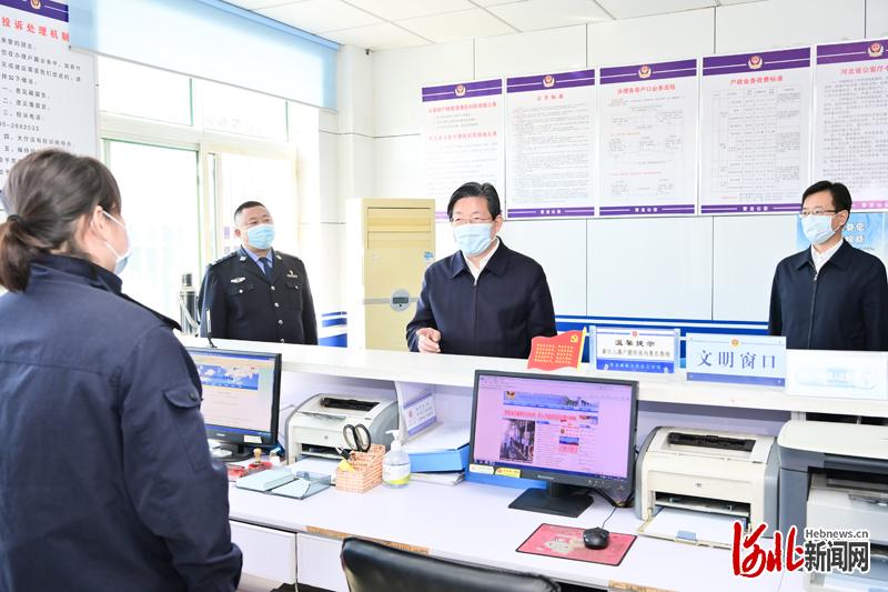 10月23日,省委书记、省人大常委会主任、省政法队伍教育整顿领导小组组长王东峰在秦皇岛市青龙满族自治县调研检查。这是王东峰在青龙满族自治县青龙镇派出所了解教育整顿开展情况。 河北日报记者赵海江摄