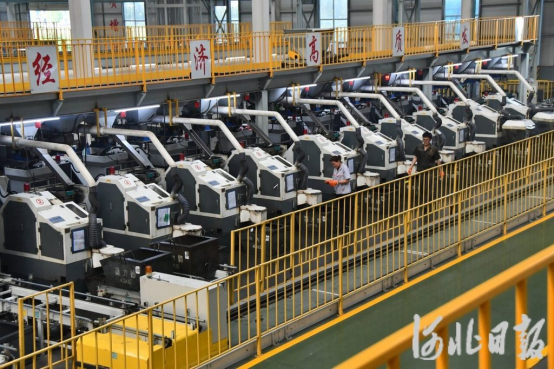 7月30日,永年区西南工业园区,国智科技(河北)股份有限公司生产车间。记者注意到,一个鞋盒大小的数据采集装置与冷镦机相连,终端还有可操控的显示屏。
