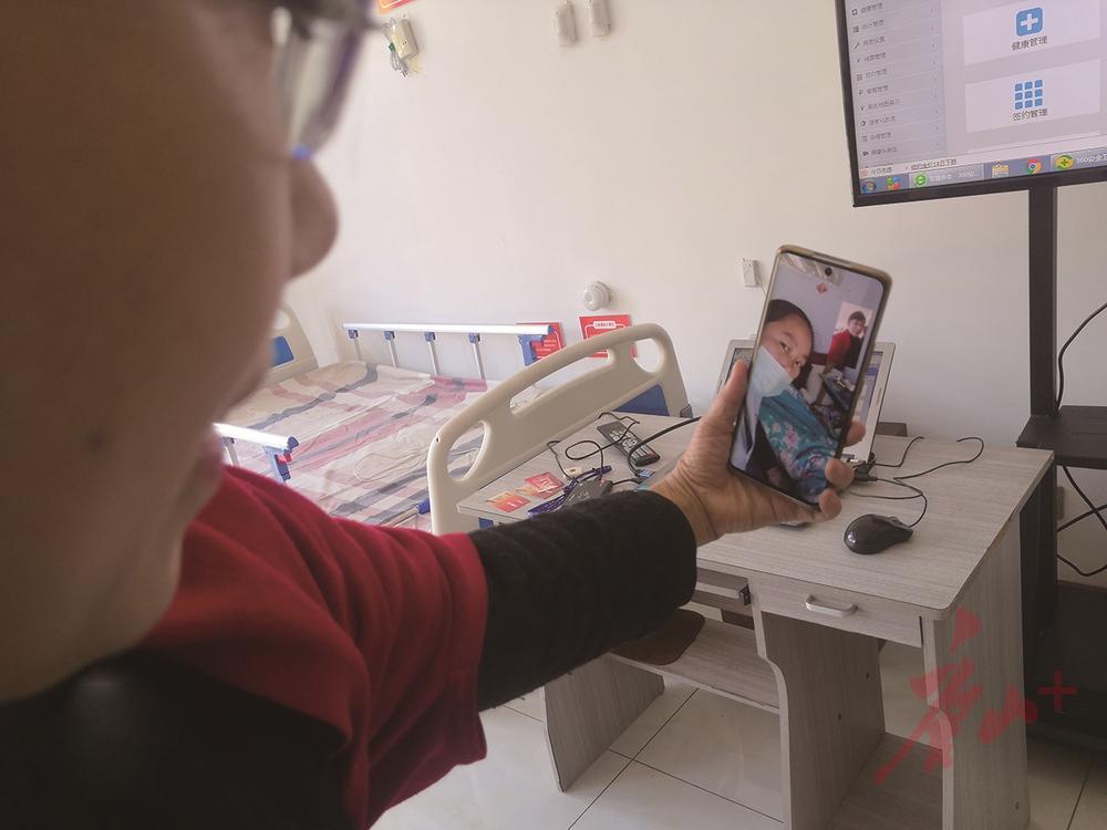 图为滦南县养老服务信息中心工作人员正通过手机,察看志愿者宿贺花服务情况。 记者 李雪松 摄