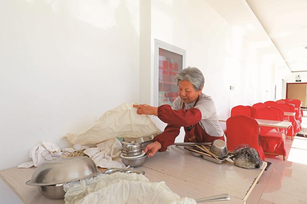 73岁的张会文身体硬朗,已经开始收拾餐具。自从2012年加入志愿者以来,她一直从事志愿服务。“我住在这家养老公寓里不花一分钱,因为我也为这里的老人提供志愿服务。”她向记者介绍,每天负责盛饭、刷碗、打扫卫生,活儿不多也不累。在她的带动下,子女们也经常来养老公寓参加志愿活动。“原来当志愿者,现在老了,享上福啦。作为‘时间银行’的受益者,现在过得特别知足。”
