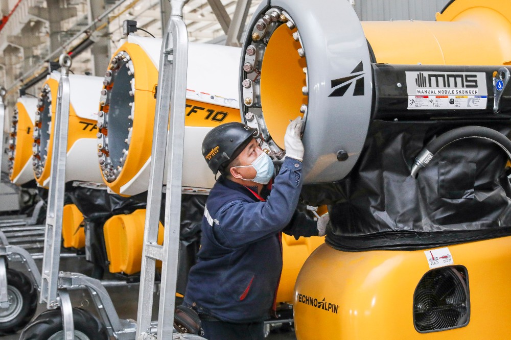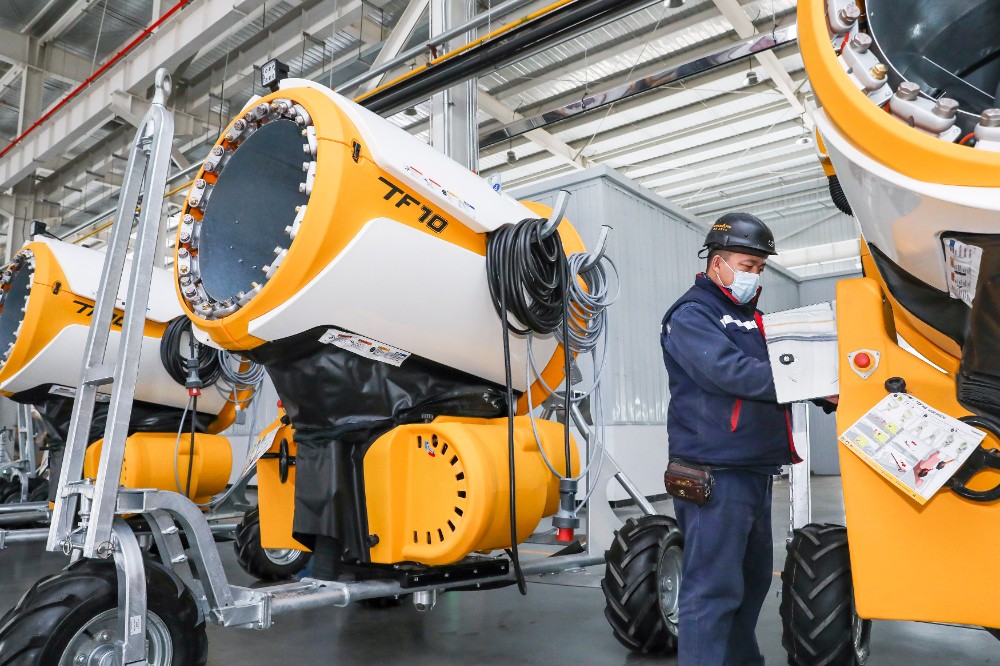 10月29日,位于张家口高新区冰雪运动装备产业园的天冰冰雪设备张家口有限公司正在进行生产,该公司已为北京2022年冬奥会提供了人工造雪设备和服务,是国家首都体育馆和国家速滑馆的独家浇冰作业供货商。