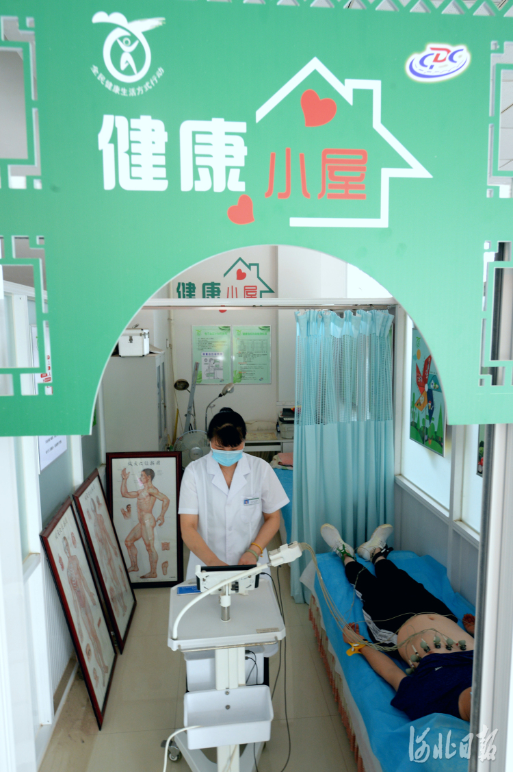 7月14日,巨鹿县巨鹿镇东杨庄村村民在村卫生室体检。河北日报记者杜柏桦摄