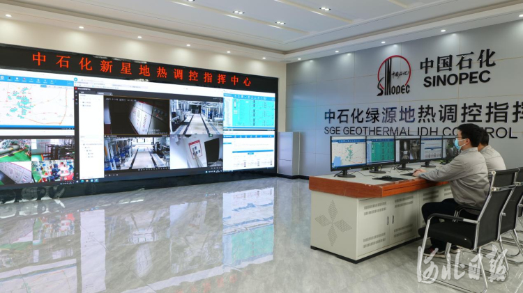 11月4日,中石化新星地热调控指挥中心工作人员正在进行监控,对监控到的问题进行第一时间处理。 河北日报记者李佳泽摄