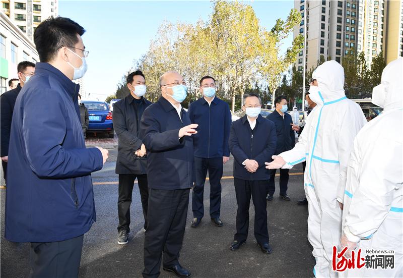 11月10日,代省长王正谱在石家庄市、辛集市检查疫情应对处置工作。这是王正谱在辛集市清河湾小区C1区与社区值守包联人员交谈,检查封控管理、环境消杀、物资保障等情况。河北日报记者孟宇光摄