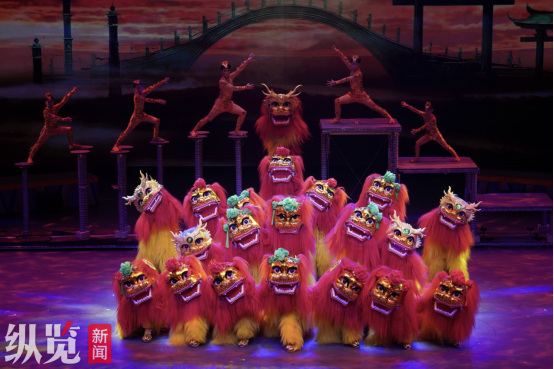 河北省杂技团和沧州杂技团带来的《祥狮跃九州》节目。