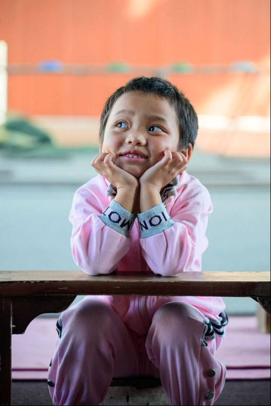 训练间隙,5岁的小萌娃坐在凳子上畅想美好的未来。