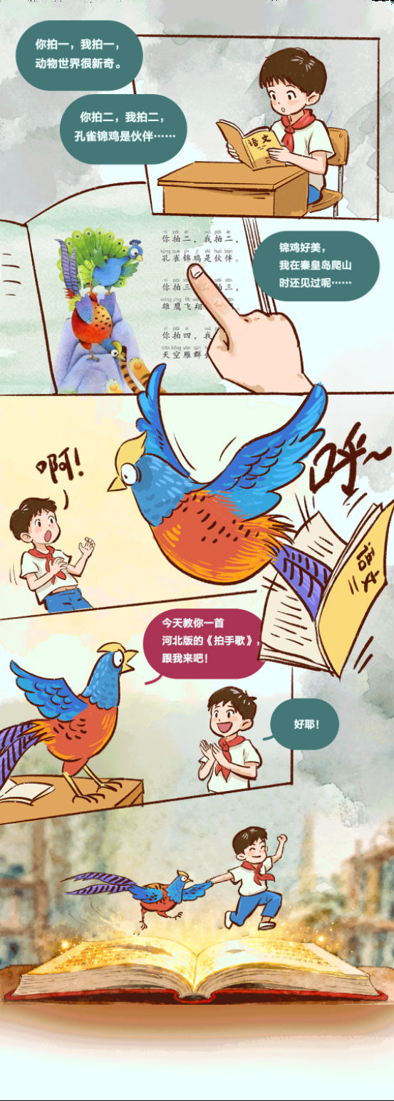 这天,二年级的小学生小明在复习课文《拍手歌》时,发生了神奇的一幕。让我们一起来看看河北的动物们吧。