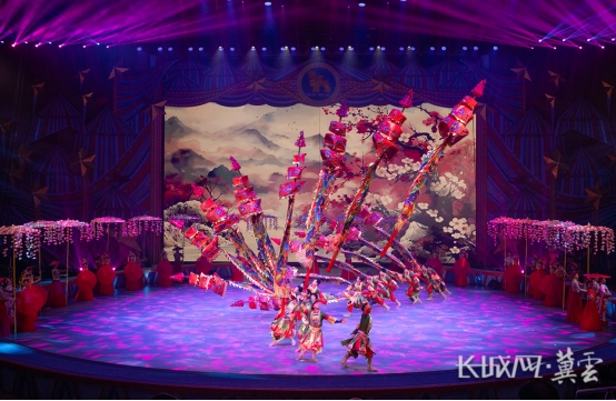 当夜幕降临,吴桥的精彩仍在继续。江湖大剧院的现代杂技秀,将传统技艺与声、光、电等现代科技及舞蹈、戏剧等艺术形式深度融合。经典节目“大变活人”升级为视觉更为震撼的“一人进、八人出”;“仙女散花”融入了柔美的孔雀舞韵,更添诗意;“空中飞人”在炫酷灯光和环绕音效的加持下,营造出极具冲击力的沉浸式观演体验。这些创新演艺形式,让古老杂技闪耀出时代的璀璨光彩。