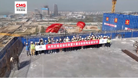 启动区财富大厦项目主体结构已顺利封顶,现在进入幕墙安装和内部装修,同步开展招商筹备,已有多家金融机构表达入驻意向。