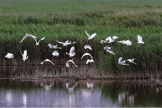 金秋时节,南大港湿地迎来候鸟迁徙高峰。据监测数据显示,本季已有10万余只候鸟陆续抵达,其中包含白琵鹭、黑翅长脚鹬、白眼潜鸭、苍鹭、白鹭等在内的多种珍稀候鸟。