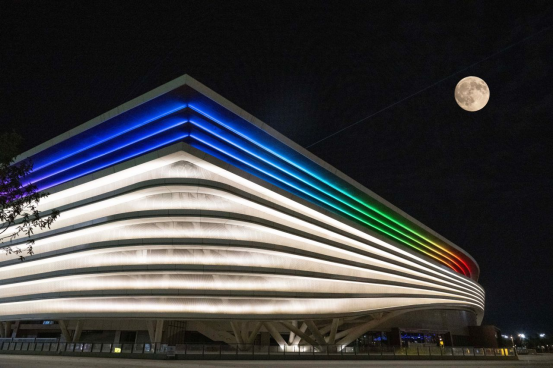 10月6日晚,在雄安体育中心拍摄的中秋圆月。
