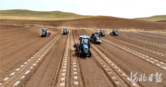沽源县白土窑乡藜麦种植基地开展机械化藜麦播种作业。