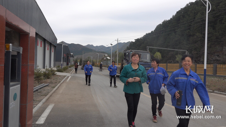 午餐时间到了,菌棒厂的女工走出厂区。长城网·冀云客户端记者 张嘉琪 吴新光 摄