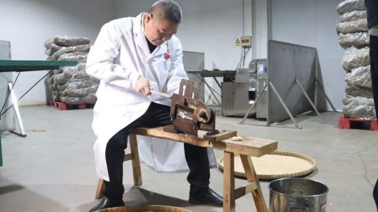 “我们的大宗饮片生产中,一半产品是基于安国传统炮制工艺进行的机械研发。”刘峰解释,以黄芪、甘草饮片加工为例,外地常见做法是将药材完全干燥,再用热水浸软切片。为避免过水损失有效成分,安国的特色工艺则是将原料晾至七八成干时即行切片,而后烘干、色选。在机械研发中,汉草堂选择严格遵循本地传统炮制逻辑,自主研发设计了一套专用流水线设备。
