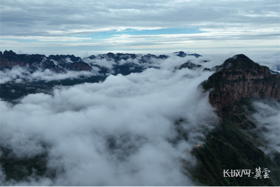 近日的连绵降雨,洗彻了东太行百里画廊的千峰万壑。当最后一滴雨水渗入山岩,奇迹,便在山谷间醒来。充沛的水汽蒸腾而上,遇冷成云,在山风的驱策下,化作一条横亘百里的“白练”,环绕着京娘湖的碧波,缠绕着东太行的绝壁,开始了它无声的舞蹈。