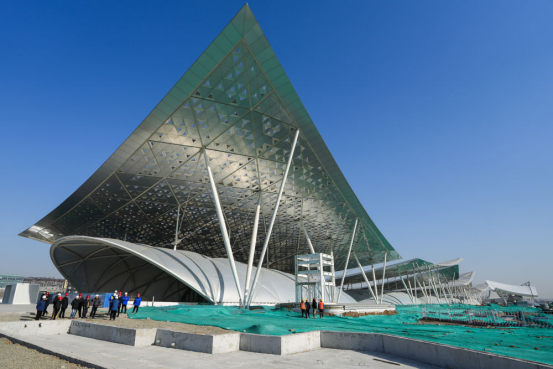 2月26日拍摄的北京城市副中心站综合交通枢纽工程和“京帆”屋盖。
