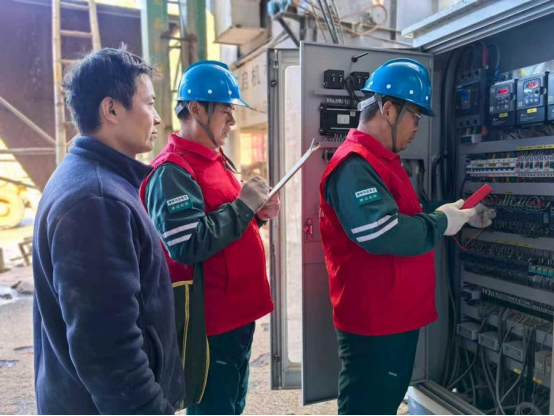 为保证烘干企业设备安全运行,国网馆陶县供电公司安排专业抢修人员组成多支服务队,配备充足应急物资,趁着烘干企业工作人员吃饭间隙,开展用电设备专项检查,及时消除安全隐患。