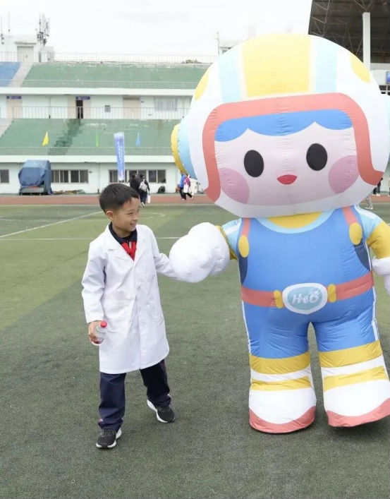 除了这些专业且丰富的展示外,成果展现场还藏着一个深受小朋友喜爱的“人气王”——吉祥物“科宝”,它被小朋友们团团围住,抢着拍照。