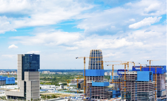 近日拍摄的位于雄安新区启动区的中国华能总部大厦、中华中化总部大厦等。
