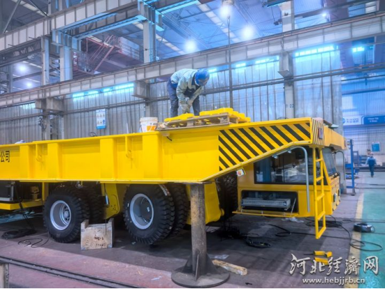 组装车间外,起重量710吨的架桥机如钢铁巨人般巍然屹立;组装车间内,矿用防爆车、船厂平板车等特种运输车正进行最后调试——这是秦皇岛天业通联重工科技有限公司(以下简称“天业通联”)传统制造业智能化变革的前沿阵地。