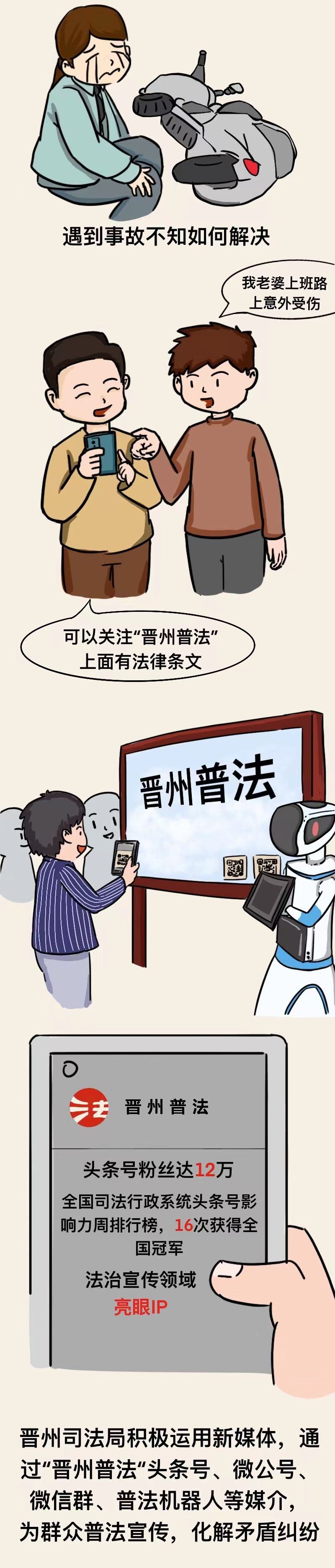 近年来,晋州市司法局积极运用新媒体普法,延伸法治宣传触角,通过“晋州普法”头条号、微信公众号等新媒体平台以及微信群、普法机器人等媒介,为群众送上普法大餐,也解决了不少矛盾纠纷。