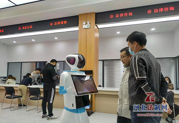 群众在晋州市社会矛盾纠纷多元化解中心与普法机器人互动学法。 河北法制报记者 张世杰 摄