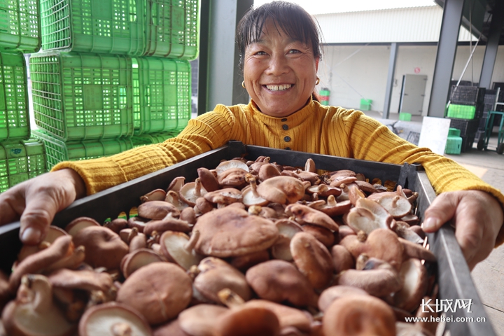 香菇大棚承包户任志美把香菇送到阜平现代食用菌产业核心区收购处,今年一年的纯收入预计能达到7-8万元。长城网·冀云客户端记者 冯硕 摄