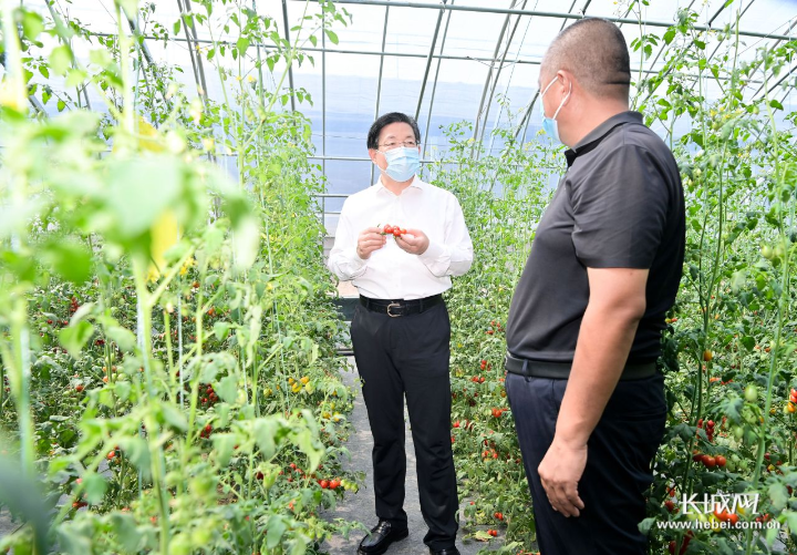 2021年8月11日上午,省委书记、省人大常委会主任王东峰到他的基层党支部联系点——石家庄市平山县西柏坡镇北庄村调研检查。这是王东峰在智慧农业园区,察看日光温室中果蔬长势,了解群众收入情况。长城网·冀云客户端记者 张瑞雨摄