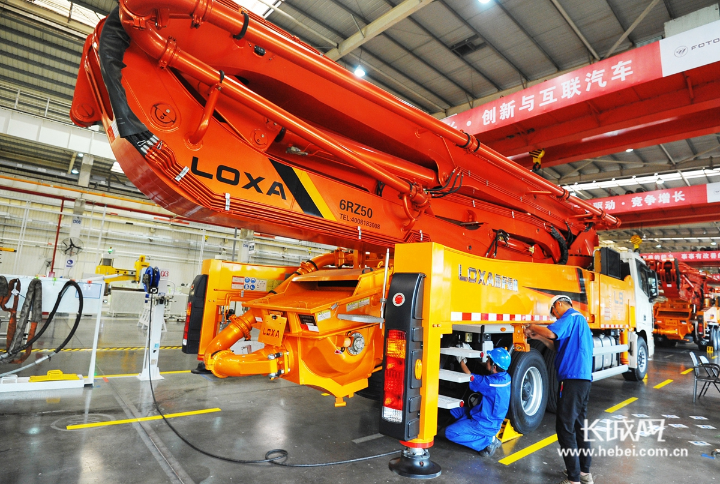 近年来,张家口市宣化区高标准规划建设了河北宣化经济开发区装备制造产业园。图为北汽福田雷萨泵送机械厂工人在专用车生产线上工作。资料图