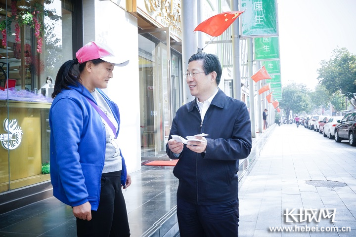 2018年10月6日,省委书记、省人大常委会主任王东峰在石家庄市暗访检查。这是王东峰与停车场管理员认真交谈。长城网·冀云客户端记者庞晓玮 摄