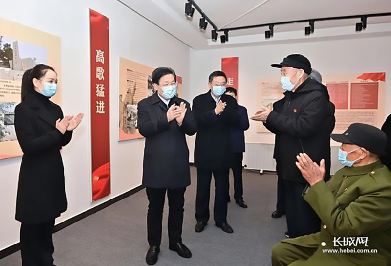 2021年2月28日,省委书记、省人大常委会主任王东峰与老党员、老战士代表走进梁家沟村村史馆,在一幅幅图片和实物前驻足观看,重温党带领群众开展革命和建设的光荣历程。长城网·冀云客户端记者 张瑞雨 摄