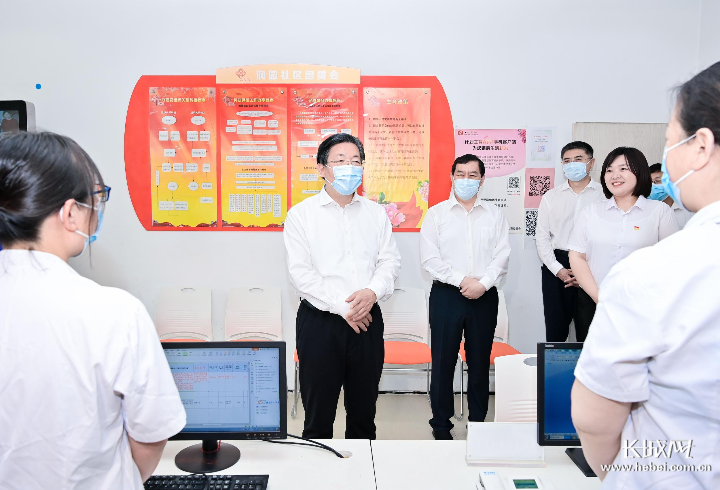 2021年6月7日上午,省委书记、省人大常委会主任王东峰在石家庄市调研检查。这是王东峰在裕华区建华南街道润园社区,认真听取“红管家”服务品牌情况汇报。长城网·冀云客户端记者 张瑞雨 摄