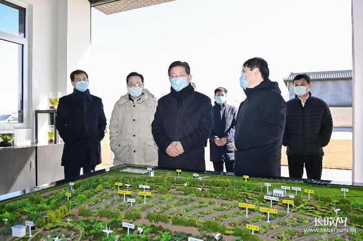 在平山县北庄村,王东峰走进新建成的智慧农业园区,察看日光温室中果蔬长势,要求大力发展设施农业、高效农业、绿色农业、品牌农业。