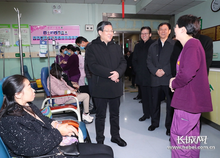 2019年11月30日上午,省委书记、省人大常委会主任王东峰在石家庄暗访检查医疗卫生体制改革和基层公共医疗服务工作。这是王东峰在石家庄市第四医院与医务工作者和患者进行互动交流。长城网·冀云客户端记者 庞晓玮 摄