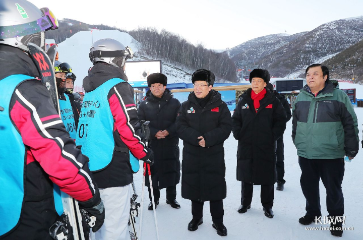 2020年12月21日至22日,省委书记、省人大常委会主任王东峰到张家口市调研检查。这是王东峰在云顶滑雪公园,与张家口市职教中心的学员们亲切交流。长城网·冀云客户端记者 张瑞雨 摄