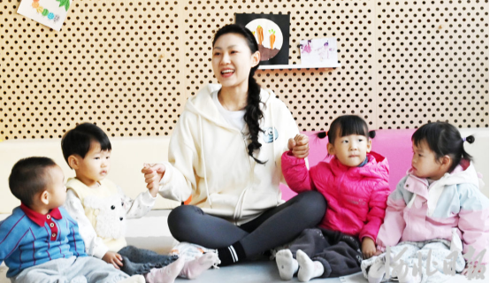 “小手小手拍拍,小手小手举起来……”10月20日上午,雄安新区容东片区双文社区享趣智汇馆二楼,来自朝晖幼儿园的老师杜若楠正带着4个两岁多的小朋友上早教课,小朋友们开心地玩着手指游戏。