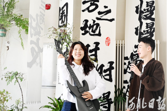 10月20日,雄安新区启动区文华社区的年轻人在社区合伙人共享空间开展青年文化娱乐活动。