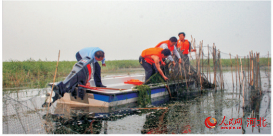 “早些年,取缔了衡水湖燃油航运船舶,清理取缔了网箱拦网围埝养殖。”衡水滨湖新区资源保护局工作人员张余广说,“近年来,在保证了充足的水量后,我们实施了生态清淤、沉水植物种植、生态浮岛建设、水生植物平衡收割项目,保证湖水水质。在此基础上,加强与科研院所交流与合作,建设大湖心水质自动监测站,将衡水湖数据实时动态监测。”