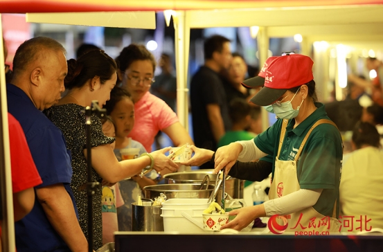 石家庄赛场外“足球市集”,络绎不绝的观众排队品尝石家庄特色美食。