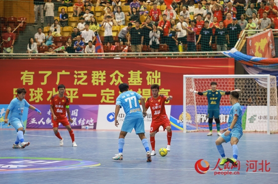 燕赵朔风起,绿茵热火燃。2025年河北省五人制足球超级联赛(简称“五超”)正在全省各地激情上演。10月25日,保定队坐镇主场迎战唐山队。经过四节激战,东道主保定队以8:2的比分力克唐山队。这场精彩对决,不仅点燃了现场数千名观众的热情,也通过直播吸引了广大网友关注。