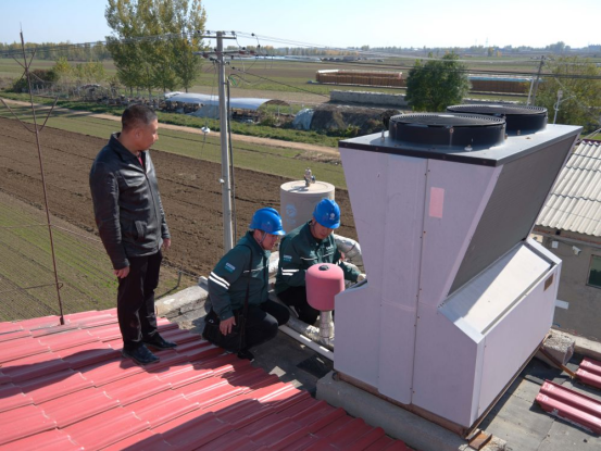 国网正定县供电公司员工协助村民检查电采暖设备。