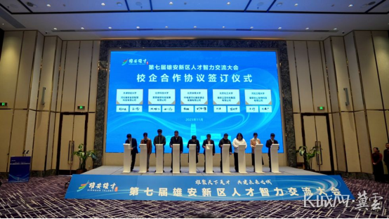第七届雄安新区人才智力交流大会上举办的校企合作协议签订仪式。