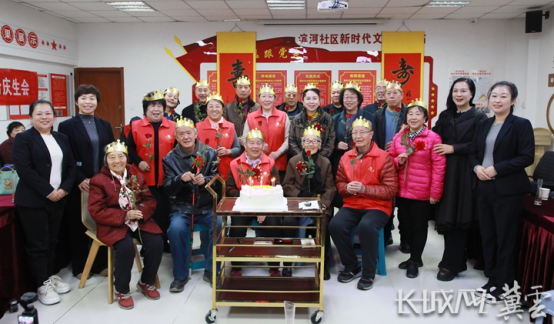 滨河社区爱孝居家养老服务中心为老年人集体庆生。