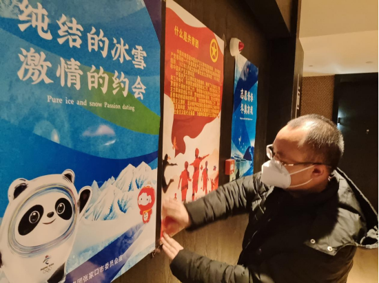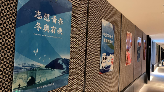 在赛会志愿者住宿楼层内,志愿者们制作、张贴了90张,复函冬奥元素和张家口特色的海报,不仅营造了浓厚的冬奥氛围,还进一步增强了集体荣誉感、获得感。