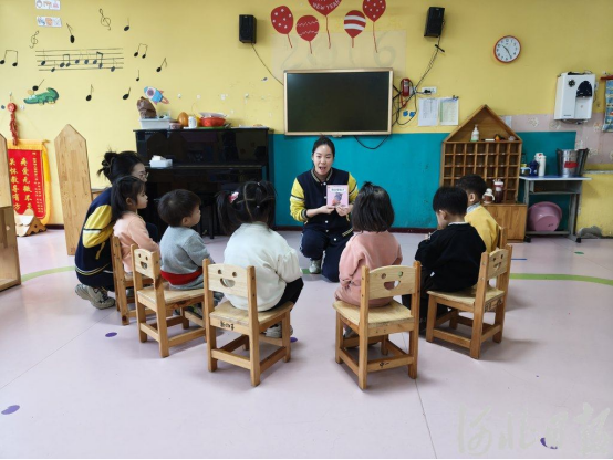 11月5日,在邯郸市新育幼儿园托大班,老师给孩子们讲绘本故事。